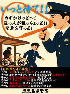 TOP>あんしんメール>自転車の盗難被害を防ごう!! - 鹿児島県警あんしんメール情報